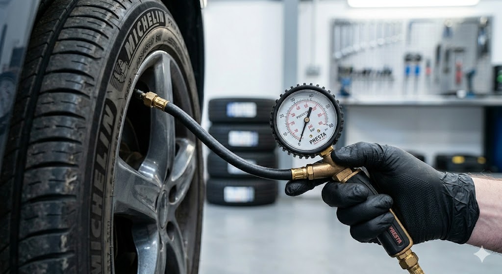 Vérification de la pression et de l'usure de vos pneus pour une sécurité optimale.